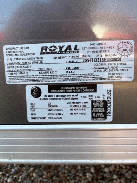 2014 Royal XR 7' x 16' Cargo Trailer